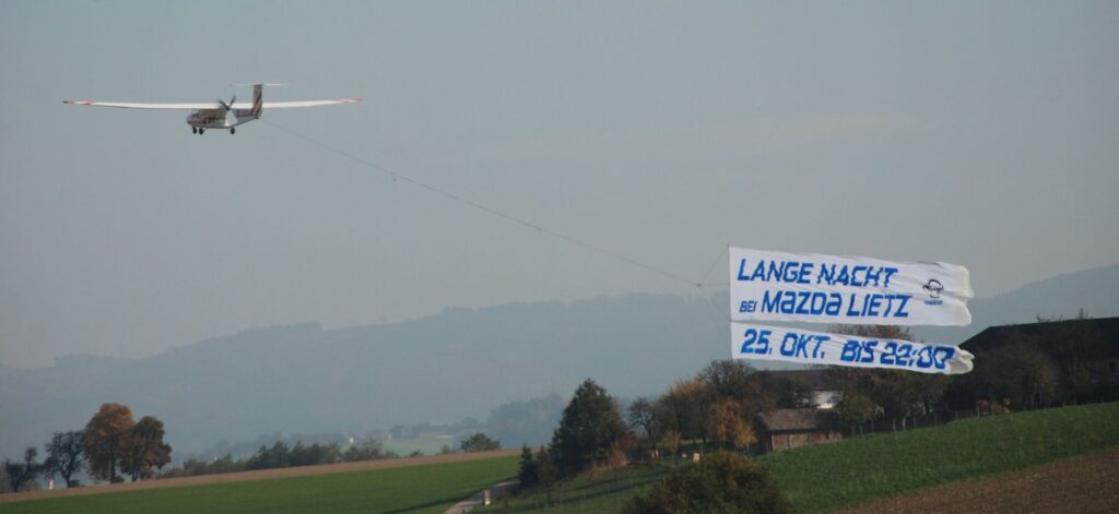 Der ESV-Amstetten Flugsport bietet die Möglichkeit für seine Sponsoren Flugbanner in der Region zu präsentieren.